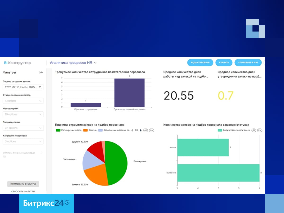 Эффективность работы HR-отдела напрямую влияет на скорость роста компании и качество человеческого капитала. В условиях высокой конкуренции за таланты и растущих требований к скорости найма, департамент персонала должен работать как хорошо отлаженный механизм с измеримыми результатами и прогнозируемыми процессами. Именно поэтому перед внедрением BI-системы Битрикс24 была проведена детальная работа по формулированию конкретных, измеримых целей.
