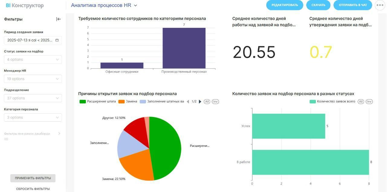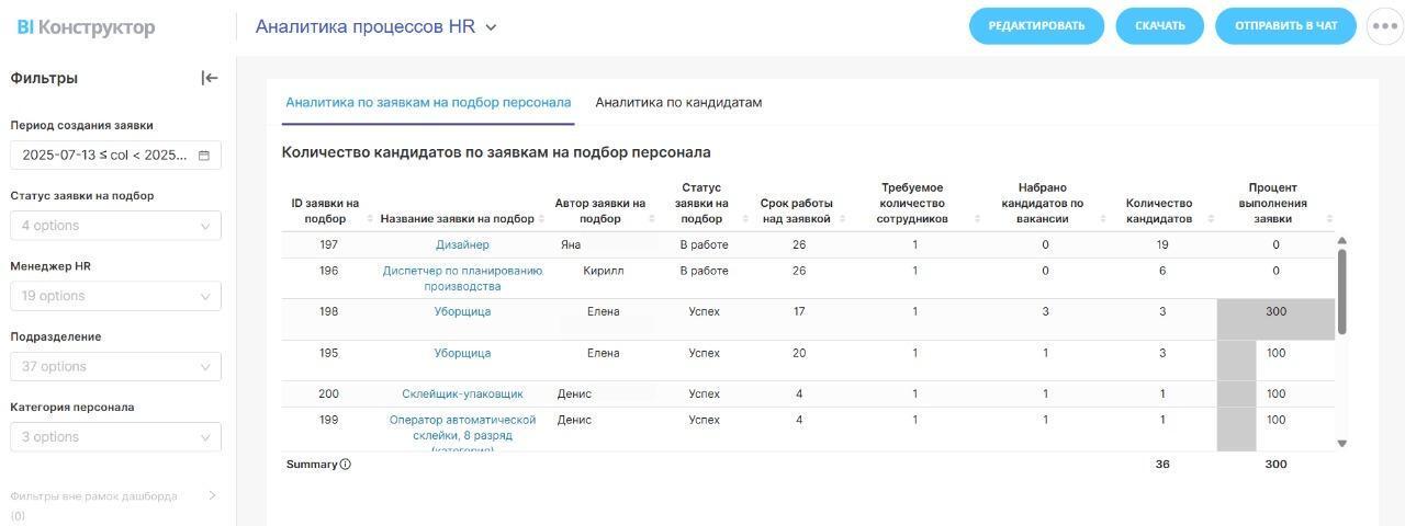 Дашборд 1: «Аналитика по заявкам на подбор персонала»